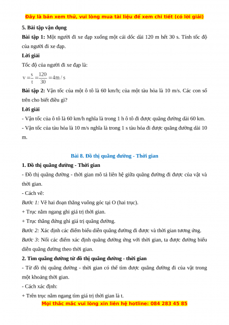 Bài tập 1: Một người đi xe đạp xuống một cái dốc dài 120 m hết 30 s. Tính tốc độ của người đi xe đạp. Lời giải