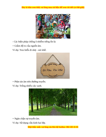 Đây là bản xem th , vu ử i lòng mua tài li u ệ đ xe ể m chi ti t (c ế ó l i ờ gi i ả ) - Các bi n pháp ệ ch ng ô nhi ố m ễ ti ng ế n l ồ à: + Gi m ả đ t ộ o c a ngu ủ n âm ồ . Ví d : ụ Treo bi n đi ể nh - ẹ nói kh . ẽ