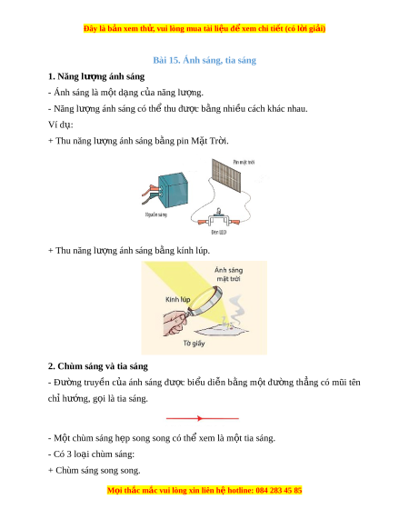 sáng có thể thu được b ng ằ nhi u ề cách khác nhau. Ví d : ụ + Thu năng lư ng ợ ánh sáng b ng pi ằ n M t ặ Tr i ờ . + Thu năng lư ng ợ ánh sáng b ng kí ằ nh lúp.