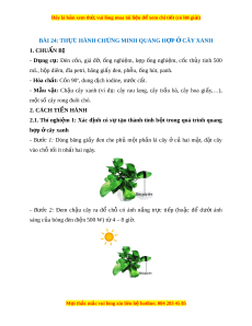 Đây là bản xem th , vu ử i lòng mua tài li u ệ đ xe ể m chi ti t (c ế ó l i ờ gi i ả ) BÀI 24: TH C Ự HÀNH CH N Ứ G MINH QUANG H P Ợ C Ở ÂY XANH 1. CHUẨN BỊ - D ng ụ c : ụ Đèn c n, ồ giá đ , ỡ ng ố nghi m ệ , k p ẹ ng ố nghi m ệ , c c ố th y ủ tinh 500 mL, h p di ộ