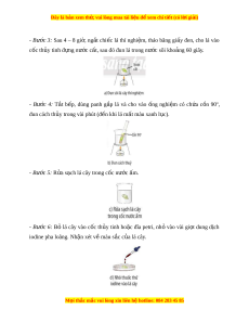ấ , sau đó đun lá trong nư c ớ sôi kho ng ả 60 giây. - Bư c ớ 4: T t ắ b p, ế dùng panh g p ắ lá và cho vào ng ố nghi m ệ có ch a ứ c n ồ 90o, đun cách th y t ủ rong vài phút (đ n khi ế lá m t ấ màu xanh l c) ụ . - Bư c ớ 5: Rửa s ch l ạ á cây trong c c n ố ư c ớ m ấ . - Bư c