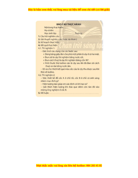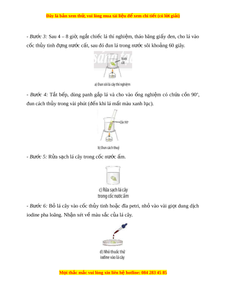 Đây là bản xem th , vu ử i lòng mua tài li u ệ đ xe ể m chi ti t (c ế ó l i ờ gi i ả ) - Bư c ớ 3: Sau 4 – 8 gi , ờ ng t ắ chi c ế lá thí nghi m ệ , tháo băng gi y ấ đen, cho lá vào cốc th y t ủ inh đ ng n ự ư c ớ c t