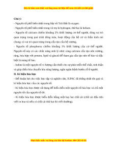 ớ protein, lipid và glucid đ ể tham gia c u ấ t o ạ nên t ế bào và đ c ặ biệt là màng t bào. ế - Iodine là m t ộ nguyên tố vi lư ng ợ c n ầ thi t ế cho s phát ự tri n ể th ch ể t ấ , tinh th n ầ và giúp đi u hòa ề chuy n hóa năng l ể ư ng, ợ ngăn ng a b ừ nh b ệ ư u c ớ ổ ng ở ư i ờ . II. Kí hi u hóa h ệ c ọ - Để thu n ậ l i ợ cho vi c ệ h c ọ t p ậ và nghiên c u, ứ IUPAC đã th ng ố nh t ấ tên g i ọ và kí hi u hóa h ệ c ọ c a các ủ nguyên t . ố - Kí hi u hóa ệ h c ọ đư c ợ s ử d ng ụ đ bi ể u ể di n m ễ t ộ nguyên t ố hóa h c ọ và ch m ỉ t ộ nguyên tử c a nguyên t ủ ố đó. - Kí hi u ệ hóa h c ọ đư c ợ bi u ể di n ễ b ng ằ m t
