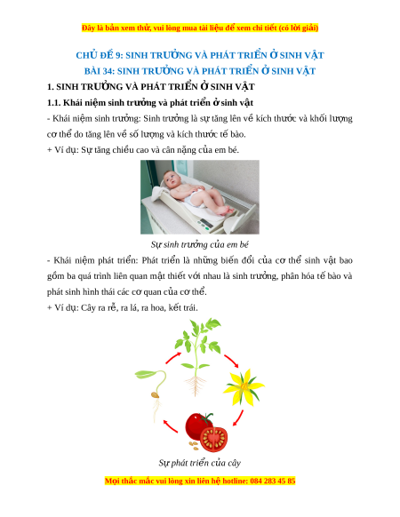 Đây là bản xem th , vu ử i lòng mua tài li u ệ đ xe ể m chi ti t (c ế ó l i ờ gi i ả ) CH Đ Ủ Ề 9: SINH TRƯ N Ở G VÀ PHÁT TRI N Ể SI Ở NH V T Ậ BÀI 34: SINH TRƯ N Ở G VÀ PHÁT TRI N Ể SI Ở NH V T Ậ 1. SINH TRƯ N Ở G VÀ PHÁT TRI N Ể SI Ở NH V T Ậ 1.1. Khái ni m