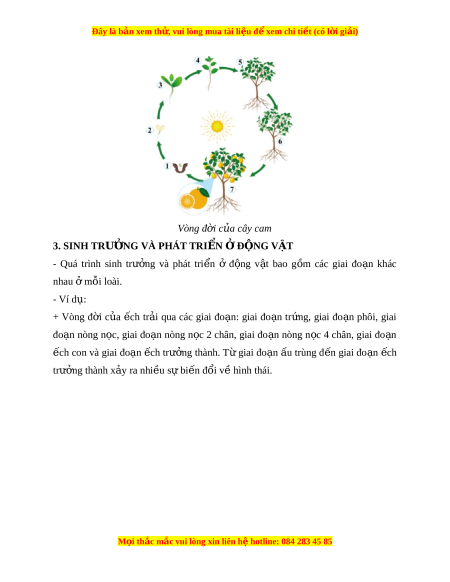 Đây là bản xem th , vu ử i lòng mua tài li u ệ đ xe ể m chi ti t (c ế ó l i ờ gi i ả ) Vòng đ i ơ c a ủ cây cam 3. SINH TRƯ N Ở G VÀ PHÁT TRI N Ể Đ Ở N Ộ G V T Ậ