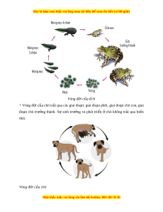 - Qua trình sinh trư ng ơ và phat tri n ể ơ đ ng ộ v t ậ bao g m ồ cac giai đo n ạ khac nhau ơ mỗi loài. - Ví d : ụ + Vòng đ i ờ c a ủ ch ế tr i ả qua cac giai đo n: ạ giai đo n ạ tr ng, ứ giai đo n ạ phôi, giai đo n ạ nòng n c, ọ giai đo n ạ nòng n c ọ 2 chân, giai đo n ạ nòng n c ọ 4 chân, giai đo n ạ ch ế con và giai đo n ạ ch ế trư ng ơ thành. T ư giai đo n ạ u ấ trung đ n ế giai đo n ạ ch ế trư ng t ơ hành x y ả ra nhi u ề s bi ự n đ ế ổi v hì ề nh thai. M i