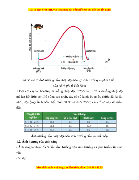 Đây là bản xem th , vu ử i lòng mua tài li u ệ đ xe ể m chi ti t (c ế ó l i ờ gi i ả ) S đ ơ ồ mô t ả nh ả hư ng c ở a nhi ủ t ệ đ đ ộ n ế s s ự inh trư ng và ở phát tri n ể c a cá r ủ ô phi V ở iệt Nam + Đôi v i ơ cây lan h ồ đi p: ê Kho ng a nhi t ê đ ô t ư 25 oC – 31 oC la kho ng a nhi t ê đô ma lan h ồ đi p ê co t il ê s ng ô cao nh t â , cây co s ô la nhi u ê nh t â , chi u ê dai la dai nhât, đ ô r ng ô c a u la l n ơ nh t â . Trên 31 oC va dư i ơ 25 oC, cac ch is ô nay s ẽ gi m a dân. nh h Ả ư ng c ở a ủ nhiệt đ đ ộ n s ế inh trư ng ở c a l ủ an hồ đi p ệ 1.2. Ảnh hư ng c ở a ánh s ủ áng