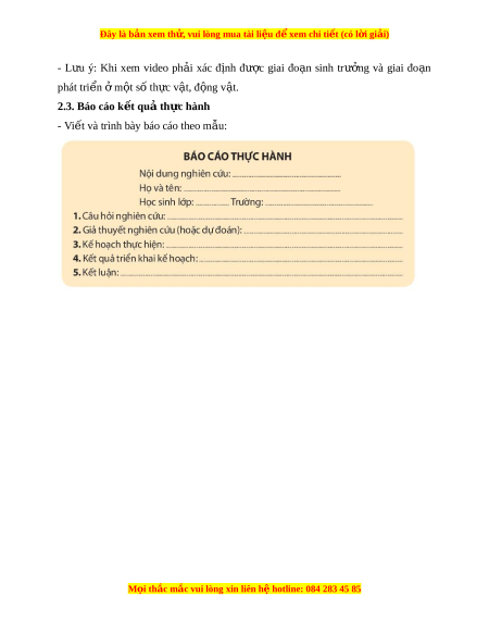 Đây là bản xem th , vu ử i lòng mua tài li u ệ đ xe ể m chi ti t (c ế ó l i ờ gi i ả ) - L u ư ý: Khi xem video ph i ả xác đ nh ị đư c ợ giai đo n ạ sinh trư ng ở và giai đo n ạ phát tri n ể m ở t ộ số th c ự v t ậ , đ ng v ộ t ậ . 2.3. Báo cáo k t ế qu t ả h c hành ự - Vi t