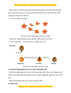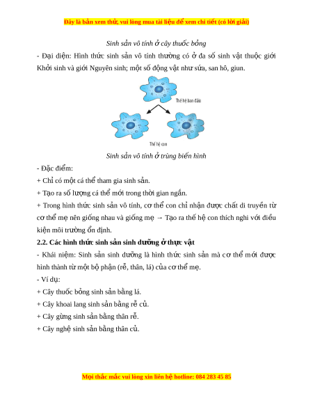 Đây là bản xem th , vu ử i lòng mua tài li u ệ đ xe ể m chi ti t (c ế ó l i ờ gi i ả ) - Phân m nh: ả Cơ th ban đ ê u phân t â hanh nh ng m ư nh ả nh . M o i ô m nh ả b t ă đ u â qua trinh sinh s n t ả o a ra cac t bao m ế i ơ hoan ch nh m i t ộ cơ th . K ê t ế qu , ả m i ô m nh ả t o nên m a t ộ cơ th m ê i ơ . + Ví d : u sao bi n, ê giun d p,… e Sinh s n
