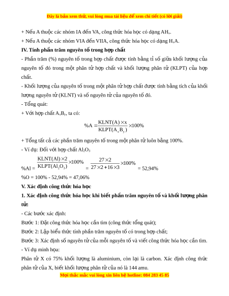 Đây là bản xem th , vu ử i lòng mua tài li u ệ đ xe ể m chi ti t (c ế ó l i ờ gi i ả ) + N u ế A thu c các ộ nhóm IA đ n ế VA, công th c hóa h ứ c ọ có d ng ạ AHx. + N u ế A thu c các ộ nhóm VIA đ n ế VIIA, công th c hóa h ứ c có ọ d ng H ạ xA. IV. Tính ph n t ầ răm nguyên t t ố rong h p ch ợ t ấ - Ph n