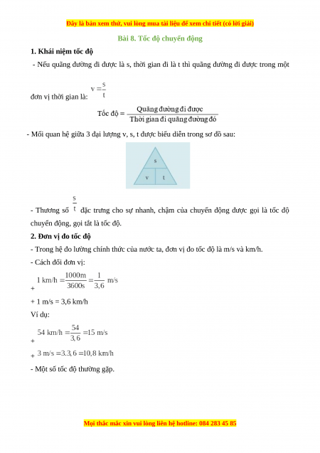 - Trong hệ đo lường chính thức của nước ta, đơn vị đo tốc độ là m/s và km/h. - Cách đổi đơn vị: + + 1 m/s = 3,6 km/h Ví dụ: + +