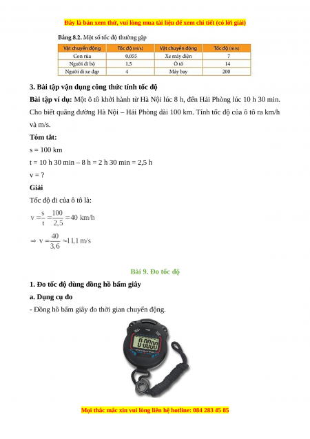 hiển thị trên đồng hồ. - Dùng công thức để tính tốc độ.