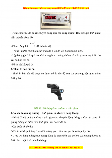 Các bước đo tốc độ dùng đồng hồ bấm giây trong phòng thực hành: