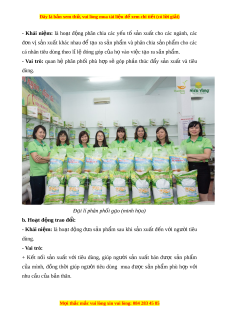 - Vai trò: quan hệ phân ph i ố phù h p ợ sẽ góp ph n ầ thúc đ y ẩ s n ả xu t ấ và tiêu dùng. Đ i ạ lí phân ph i ố g o ạ (minh h a) ọ b. Ho t ạ đ ng t ộ rao đ i ổ : - Khái ni m ệ : là ho t ạ đ ng ộ đ a ư s n ả ph m ẩ sau khi s n ả xu t ấ đ n ế v i ớ ngư i ờ tiêu dùng. - Vai trò: + K t ế n i ố s n ả xu t ấ v i ớ tiêu dùng, giúp ngư i ờ s n ả xu t ấ bán đư c ợ s n ả ph m ẩ c a ủ mình, đ ng ồ th i ờ giúp ngư i ờ tiêu dùng mua đư c ợ s n ả ph m ẩ phù h p ợ v i ớ nhu cầu c a ủ b n t ả hân. M i ọ thắc m c