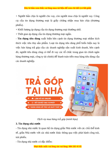 Đây là bản xem th , vu ử i lòng mua tài li u ệ đ xe ể m chi ti t ế (có l i ờ gi i ả ) + Ngư i ờ b n ả ch u ị là ngư i ờ cho vay, còn ngư i ờ mua ch u ị là ngư i ờ vay. Công cụ c a ủ tin d ng ụ thư ng ơ m i ạ là gi y ấ ch ng ứ nh n ậ mua bán ch u ị (thư ng ơ phi u ế ). + Khối lư ng ợ áp d ng c ụ a ủ tín d ng ụ thư ng ơ m i ạ thư ng ờ nh . ỏ + Th i ờ gian áp d ng c ụ a ủ tín d ng t ụ hư ng m ơ i ạ ng n. ắ - Tín d ng ụ tiêu dùng xu t ấ hi n ệ bên c nh ạ tín d ng ụ thư ng ơ m i ạ nh m ằ kích thích vi c ệ tiêu thụ s n ả ph m ẩ . Lo i ạ tín d ng ụ tiêu dùng phổ bi n ế hi n ệ nay là