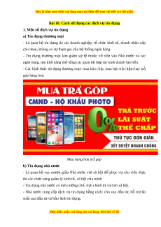 Đây là bản xem th , vu ử i lòng mua tài li u ệ đ xe ể m chi ti t ế (có l i ờ gi i ả ) Bài 10. Cách s d ử ng các ụ d ch v ị t ụ ín d ng ụ 1. M t ộ số d ch v ị t ụ ín d ng ụ a) Tín d ng t ụ hư ng m ơ i ạ - Là quan hệ tín d ng ụ do các doanh nghi p, ệ tổ ch c ứ kinh t , ế doanh nhân c p ấ