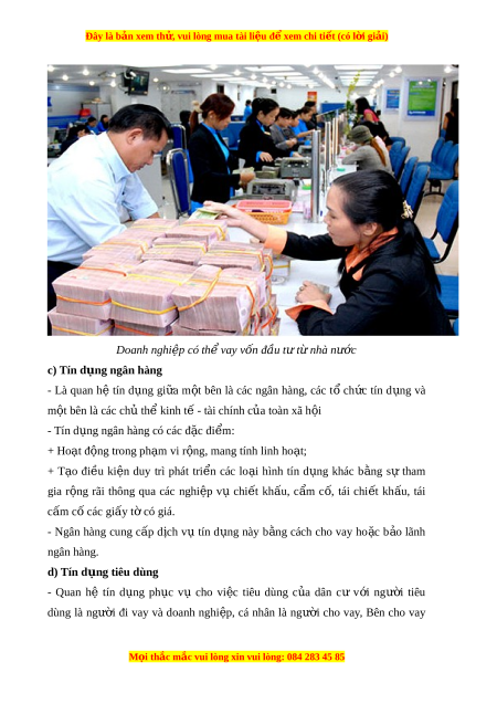 Đây là bản xem th , vu ử i lòng mua tài li u ệ đ xe ể m chi ti t (c ế ó l i ờ gi i ả ) Doanh nghi p có t ệ h vay ể v n đ ố u t ầ t ư nhà n ừ ước c) Tín d ng ngân hà ụ ng - Là quan hệ tín d ng ụ gi a ữ m t