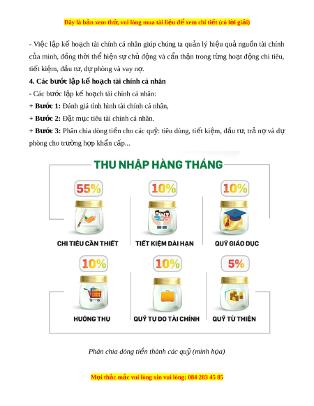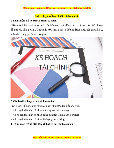 Đây là bản xem th , vu ử i lòng mua tài li u ệ đ xe ể m chi ti t (c ế ó l i ờ gi i ả ) Bài 11. Lập k ho ế ch t ạ ài chính cá nhân 1. Khái ni m ệ k ho ế ch t ạ ài chính cá nhân - Kế ho ch