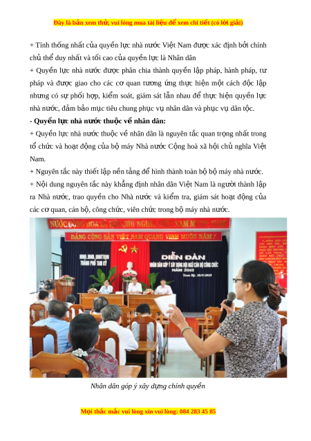 Đây là bản xem th , vu ử i lòng mua tài li u ệ đ xe ể m chi ti t (c ế ó l i ờ gi i ả ) + Tính th ng nh ố t ấ c a ủ quy n ề l c ự nhà nư c ớ Vi t ệ Nam đư c ợ xác đ nh ị b i ở chính chủ th duy nh ể ất và tối cao c a ủ quy n l ề c l ự à Nhân dân + Quy n ề l c ự nhà nư c ớ đư c ợ phân chia thành quy n ề l p ậ pháp, hành pháp, tư pháp và đư c
