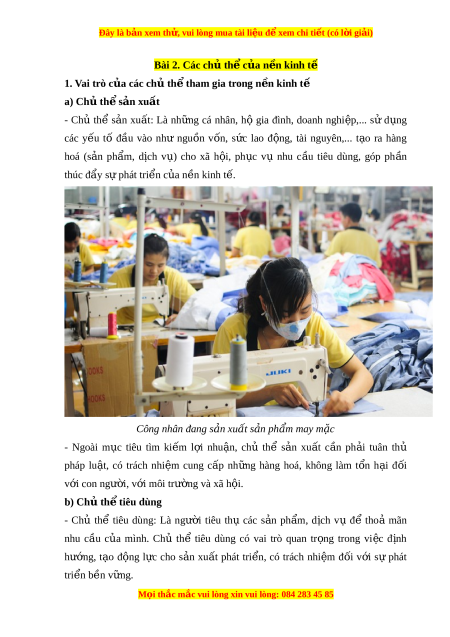Đây là bản xem th , vu ử i lòng mua tài li u ệ đ xe ể m chi ti t ế (có l i ờ gi i ả ) Bài 2. Các ch t ủ h c ể a n ủ n ki ề nh tế 1. Vai trò c a các ch ủ ủ th t