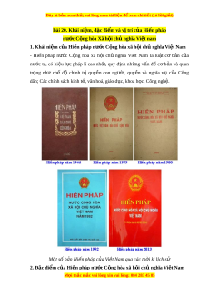 Đây là bản xem th , vu ử i lòng mua tài li u ệ đ xe ể m chi ti t ế (có l i ờ gi i ả ) Bài 20. Khái ni m ệ , đ c đi ặ m ể và v t ị rí c a H ủ i n phá ế p nư c ớ C ng hòa X ộ ã h i ộ ch nghĩ ủ a Vi t ệ nam 1. Khái ni m ệ c a H ủ i n p ế háp nư c C ớ ng ộ hòa xã h i ộ ch nghĩ ủ a Vi t ệ Nam - Hi n ế pháp nư c ớ C ng ộ hoà xã h i ộ chủ nghĩa Vi t ệ Nam là lu t ậ cơ b n ả c a ủ nư c ớ ta, có hi u ệ l c ự pháp lí cao nh t ấ , quy đ nh ị nh ng ữ v n ấ đ ề c ơ b n ả và quan tr ng