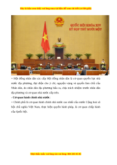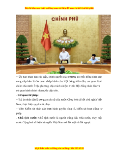 Đây là bản xem th , vu ử i lòng mua tài li u ệ đ xe ể m chi ti t ế (có l i ờ gi i ả ) + y Ủ ban nhân dân các c p, ấ chính quy n ề đ a ị phư ng ơ do H i ộ đ ng ồ nhân dân cung c p ấ b u ầ là Cơ quan ch p ấ hành c a ủ H i ộ đ ng ồ nhân dân, cơ quan hành chính nhà nư c ớ đ ở a ph ị ư ng, ch ơ u t ị rách nhi m ệ trư c ớ H i ộ đ ng nhân dân và ồ c quan hành ơ chính nhà nư c c ớ ấp trên. - Cơ quan t p ư háp: + Toà án nhân dân là c ơ quan xét x ử c a ủ nư c ớ C ng ộ hoà xã h i ộ ch ủ nghĩa Vi t ệ Nam, th c hi ự n quy ệ n t ề pháp. ư + Vi n ệ Ki m ể sát nhân dân th c ự hành quy n ề công t , ố ki m ể sát ho t ạ đ ng ộ tư pháp. - Chủ t ch ị nư c: ớ Chủ t ch ị nư c ớ là ngư i ờ đ ng ứ đ u ầ Nhà nư c, ớ thay m t ặ nư c C ớ ng hoà xã h ộ i ộ ch nghĩ ủ a Vi t ệ Nam v đ ề i ố n i ộ và đ i ố ngo i ạ . M i