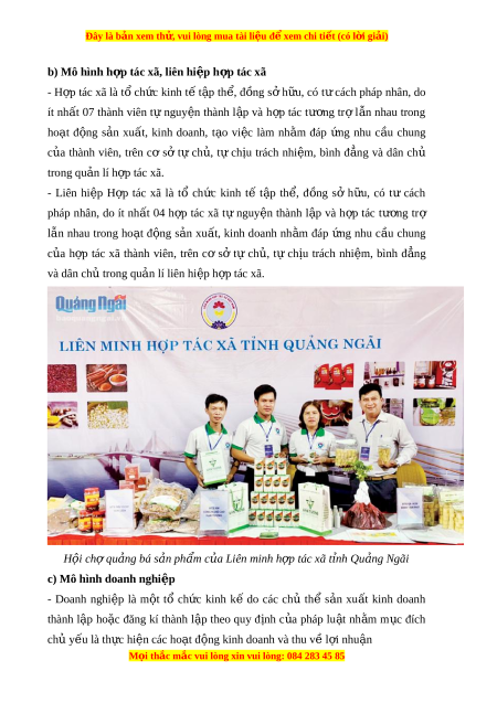 b) Mô hình h p tác xã, liên hi p h p tác xãợ ệ ợ