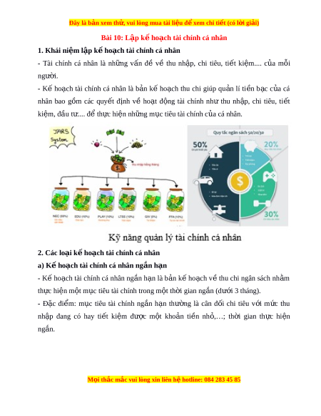 Đây là bản xem th , vu ử i lòng mua tài li u ệ đ xe ể m chi ti t ế (có l i ờ gi i ả ) Bài 10: Lập k h ế o ch t ạ ài chính cá nhân 1. Khái ni m ệ l p k ậ ho ế ch t ạ ài chính cá nhân