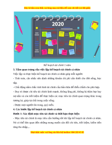 Đây là bản xem th , vu ử i lòng mua tài li u ệ đ xe ể m chi ti t ế (có l i ờ gi i ả ) Kế ho ch ạ tài chính 1 năm 3. Tầm quan tr ng c ọ a vi ủ c l ệ p k ậ h ế o ch t ạ ài chính cá nhân Việc l p và t ậ h c ự hi n k ệ ế ho ch t ạ