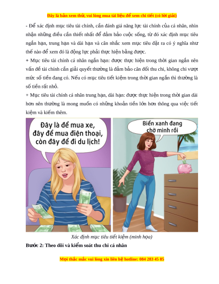 Đây là bản xem th , vu ử i lòng mua tài li u ệ đ xe ể m chi ti t ế (có l i ờ gi i ả ) - Để xác đ nh ị m c ụ tiêu tài chính, c n ầ đánh giá năng l c ự tài chính c a ủ cá nhân, nhìn nh n ậ nh ng ữ đi u ề c n ầ thi t ế nh t ấ để đảm b o ả cu c ộ s ng, ố từ đó xác đ nh ị m c ụ tiêu ngắn h n ạ , trung h n ạ và dài h n ạ và cân nh c ắ xem m c ụ tiêu đ t ặ ra có ý nghĩa như th n