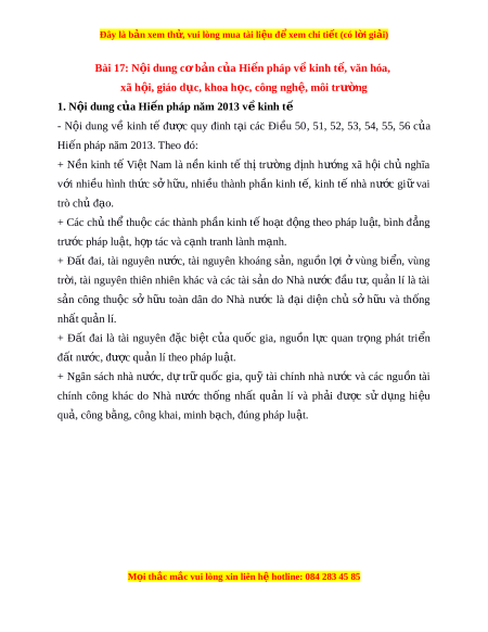 Đây là bản xem th , vu ử i lòng mua tài li u ệ đ xe ể m chi ti t (c ế ó l i ờ gi i ả ) Bài 17: N i ộ dung c b ơ n c ả a H ủ i n pháp v ế ki ề nh t , văn hóa, ế xã h i ộ , giáo d c, ụ khoa h c, ọ công ngh , m ệ ôi trư ng ờ 1. N i ộ dung c a H ủ i n phá ế p năm 2013 v ki ề nh tế - N i ộ dung về kinh tế đư c ợ quy đinh t i ạ các Đi u