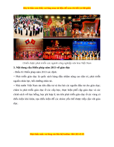 ể các ngành công nghi p văn hóa V ệ i t ệ Nam 3. N i ộ dung c a H ủ i n phá ế p năm 2013 v gi ề áo d c ụ - Điều 61 Hi n ph ế áp năm 2013 xác định: + Phát tri n ể giáo d c ụ là qu c ố sách hàng đ u ầ nh m