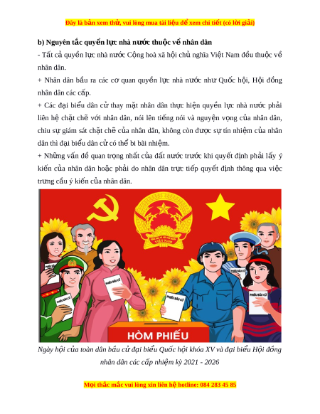Đây là bản xem th , vu ử i lòng mua tài li u ệ đ xe ể m chi ti t (c ế ó l i ờ gi i ả ) b) Nguyên t c quy ắ n l ề c ự nhà nư c t ớ hu c v ộ nhân dâ ề n - Tất c ả quy n l ề c ự nhà nư c ớ C ng ộ hoà xã h i ộ ch ủ nghĩa Vi t ệ Nam đ u ề thu c ộ về nhân dân. + Nhân dân b u ầ ra các cơ quan quy n ề l c ự nhà nư c ớ như Qu c ố h i ộ , H i ộ đ ng ồ nhân dân các cấp. + Các đ i ạ bi u ể dân cử thay m t ặ nhân dân th c ự hi n ệ quy n ề l c ự nhà nư c ớ ph i ả liên hệ ch t ặ chẽ v i