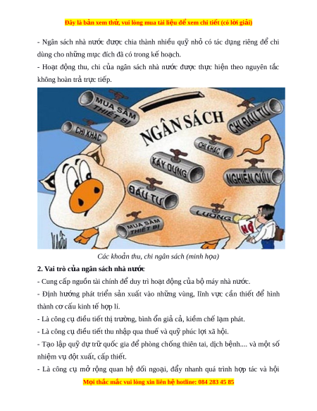 Đây là bản xem th , vu ử i lòng mua tài li u ệ đ xe ể m chi ti t (c ế ó l i ờ gi i ả ) - Ngân sách nhà nư c ớ đư c ợ chia thành nhi u ề quỹ nhỏ có tác d ng ụ riêng để chi dùng cho nh ng ữ m c đí ụ ch đã có trong k ho ế ch. ạ - Ho t ạ đ ng ộ thu, chi c a ủ ngân sách nhà nư c ớ đư c ợ th c ự hi n ệ theo nguyên t c ắ không hoàn tr t ả r c t ự i p. ế Các kho n
