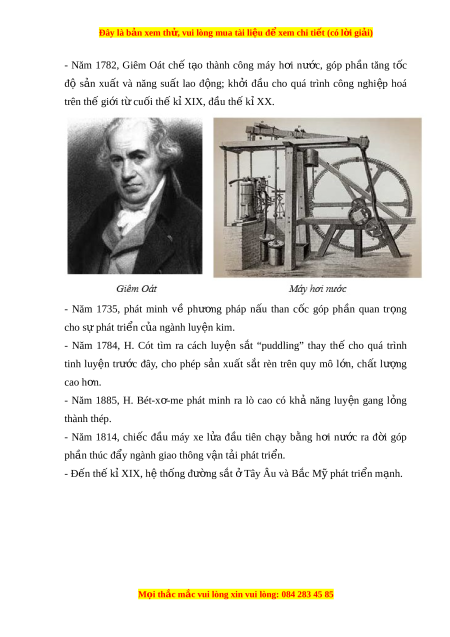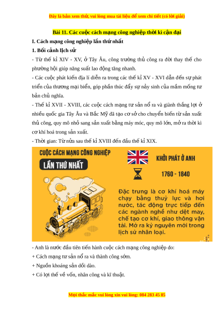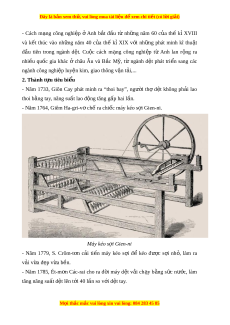 Đây là bản xem th , vu ử i lòng mua tài li u ệ đ xe ể m chi ti t (c ế ó l i ờ gi i ả ) - Cách m ng ạ công nghi p ệ ở Anh b t ắ đ u ầ từ nh ng ữ năm 60 c a ủ thế kỉ XVIII và k t ế thúc vào nh ng ữ năm 40 c a ủ thế kỉ XIX v i ớ nh ng ữ phát minh kĩ thu t ậ đầu tiên trong ngành d t ệ . Cu c ộ cách m ng ạ công nghi p ệ từ Anh lan r ng ộ ra nhi u