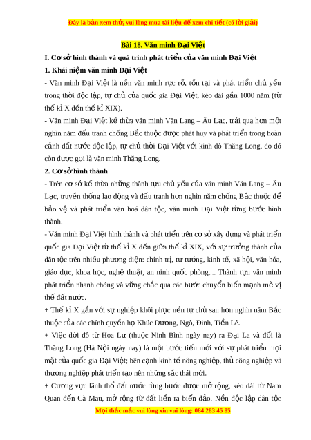 Đây là bản xem th , vu ử i lòng mua tài li u ệ đ xe ể m chi ti t ế (có l i ờ gi i ả ) Bài 18. Văn minh Đ i ạ Vi t ệ