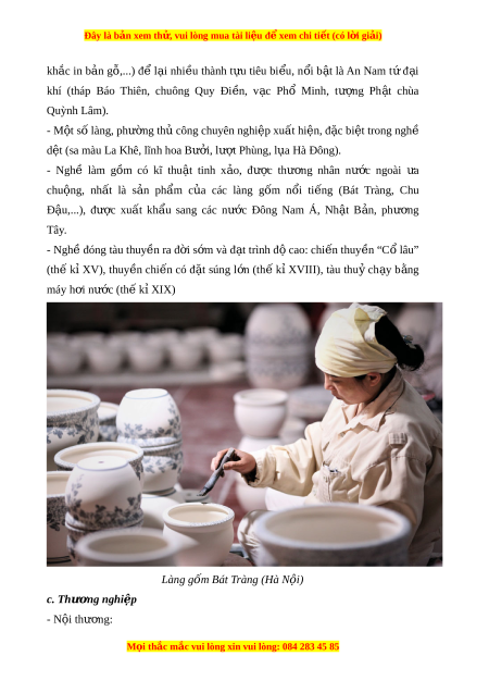 Làng gốm Bát Tràng (Hà N i ộ ) c. Thư ng ng ơ hi p ệ - N i ộ thư ng: ơ M i ọ thắc m c