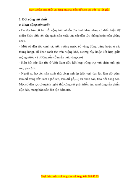 Đây là bản xem th , vu ử i lòng mua tài li u ệ đ xe ể m chi ti t ế (có l i ờ gi i ả ) 1. Đ i ờ s ng v ố t ậ ch t ấ a. Hoạt đ ng ộ s n xu ả t ấ - Do đ a ị bàn cư trú tr i ả r ng ộ trên nhi u ề đ a