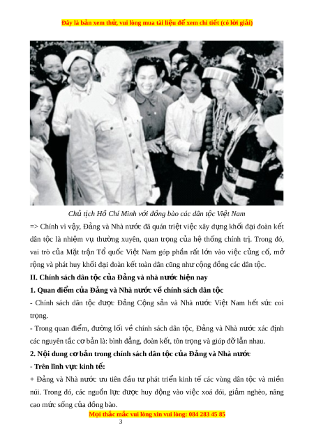 - Chính sách dân t c đ c Đ ng C ng s n và Nhà n c Vi t Nam h t s c coiộ ượ ả ộ ả ướ ệ ế ứ