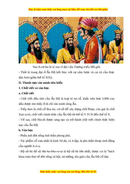 Đây là bản xem th , vu ử i lòng mua tài li u ệ đ xe ể m chi ti t ế (có l i ờ gi i ả ) Bài 8. Văn minh n Đ Ấ c ộ - ổ trung đ i ạ