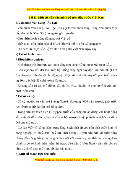 Đây là bản xem th , vu ử i lòng mua tài li u ệ đ xe ể m chi ti t (c ế ó l i ờ gi i ả ) Bài 11. M t ộ số n n văn m ề inh c t ổ rên đ t ấ nư c ớ Vi t ệ Nam