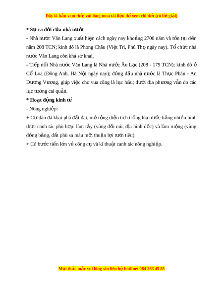 Đây là bản xem th , vu ử i lòng mua tài li u ệ đ xe ể m chi ti t (c ế ó l i ờ gi i ả ) * Sự ra đ i ờ c a nhà n ủ ư c ớ - Nhà nư c ớ Văn Lang xu t ấ hi n ệ cách ngày nay kho ng ả 2700 năm và t n ồ t i ạ đ n ế