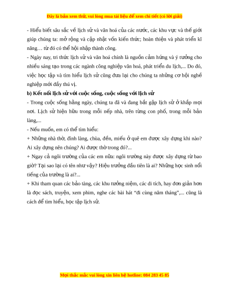 ạ trong các ngành công nghi p ệ văn hoá, phát tri n ể du l ch,... ị Do đó, việc h c ọ t p ậ và tìm hi u ể l ch ị sử cũng đ a ư l i ạ cho chúng ta nh ng ữ cơ h i ộ nghề nghiệp m i ớ đầy thú v .ị b) K t ế n i ố l ch ị s v ử i ớ cu c ộ s ng, cu ố c s ộ ng ố v i ớ l ch s ị ử - Trong cu c ộ s ng ố h ng