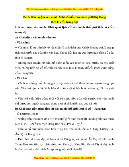 Đây là bản xem th , vu ử i lòng mua tài li u ệ đ xe ể m chi ti t (c ế ó l i ờ gi i ả ) Bài 5. Khái ni m ệ văn minh. M t ộ s n ố n văn m ề inh phư ng ơ Đông th i ờ kì c - ổ trung đ i ạ I. Khái ni m