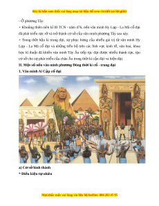 ề giá trị từ văn minh Hy L p ạ - La Mã cổ đ i ạ và nh ng ữ ti n ế bộ trên các lĩnh v c ự kinh t , ế văn hoá, khoa h c ọ kĩ thu t ậ đã khi n ế văn minh Tây Âu ti p ế t c ụ đ t ạ đư c ợ nhi u ề thành t u, ự t o ạ cơ s cho ở s phát ự tri n c ể a châu ủ Âu trong th i ờ kì c n đ ậ i ạ và hi n đ ệ i ạ . II. M t ộ s n ố n văn m ề inh phư ng Đ ơ ông th i ờ kì c - ổ trung đ i ạ 1. Văn minh Ai C p c ậ đ ổ i ạ a) C s ơ hì ở nh thành * Đi u ki ề n t ệ nhi ự ên M i