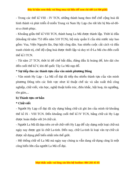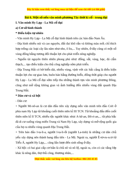 Đây là bản xem th , vu ử i lòng mua tài li u ệ đ xe ể m chi ti t (c ế ó l i ờ gi i ả ) Bài 6. M t ộ số n n văn m ề inh phư ng ơ Tây th i ờ kì c - ổ trung đ i ạ I. Văn minh Hy L p - ạ La Mã c đ ổ i ạ a) C s ơ hì ở nh thành * Đi u ki ề n t ệ nhi ự ên - Văn minh Hy L p - ạ La Mã c đ ổ i