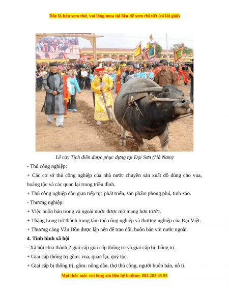 + Thăng Long trở thành trung tâm thủ công nghiệp và thương nghiệp của Đại Việt.