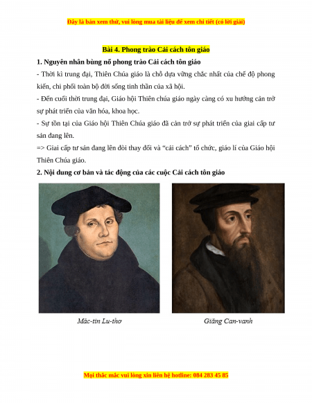 Lý thuyết Lịch sử 7 Cánh diều Bài 4: Phong trào cải cách tôn giáo