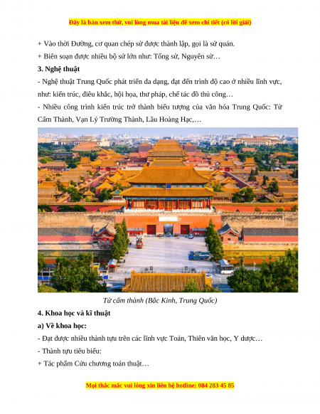 - Nghệ thuật Trung Quốc phát triển đa dạng, đạt đến trình độ cao ở nhiều lĩnh vực,