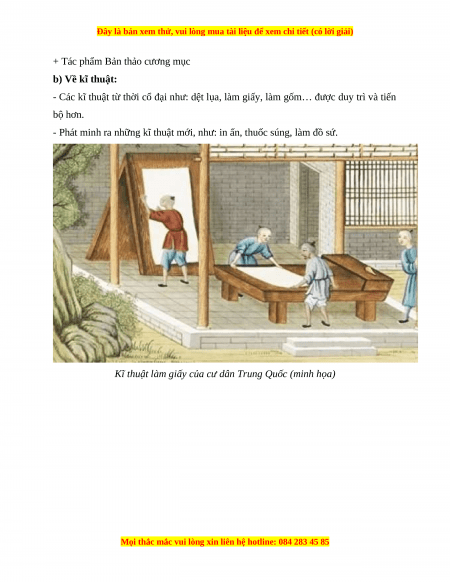- Các kĩ thuật từ thời cổ đại như: dệt lụa, làm giấy, làm gốm… được duy trì và tiến